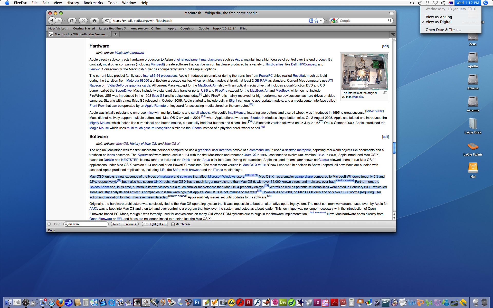 GUIDED BY MOTIVES UNRELATED TO THE MERITS OF THAT SYSTEM. This is not going to be an exhaustive page. The claims made by Thomson are self-evidently flawed. Below is a screenshot of Thomson's claims made online: "Mac at 25: Why I still hate them The reasoning he immediately proffers is: "Why? Because I hate the things." Hardly a reason. Claiming to justify his hate Thomson makes a number of assertions: "Another screed from this crowd is that Apple must be better because it doesn't get hit by malware. Macs are perfectly susceptible to malware as it turns out, but no-one is bothered to write it for them. Why would a profit-minded criminal try and infect only seven per cent of computers, when he could reach 90 per cent instead?" When I first bought a Mac in December of 1998 I had to buy anti-virus software. Mac was at OS version 8.5 at that stage (roughly equivalent to Windows 98). As far as I know a much smaller percentage of computer users were using Apple in 1998 than are using Macs today, but viruses were being written for Macs! According to Thomson however, despite a massive proliferation of Mac users, there aren't enough Mac users for hackers to bother to write malware for them. Is he serious or plain stupid? Below, one of the anti-virus programs which I used on the (pre-OSX) Mac OS which was necessary because viruses were being written for Macs running the original OS: