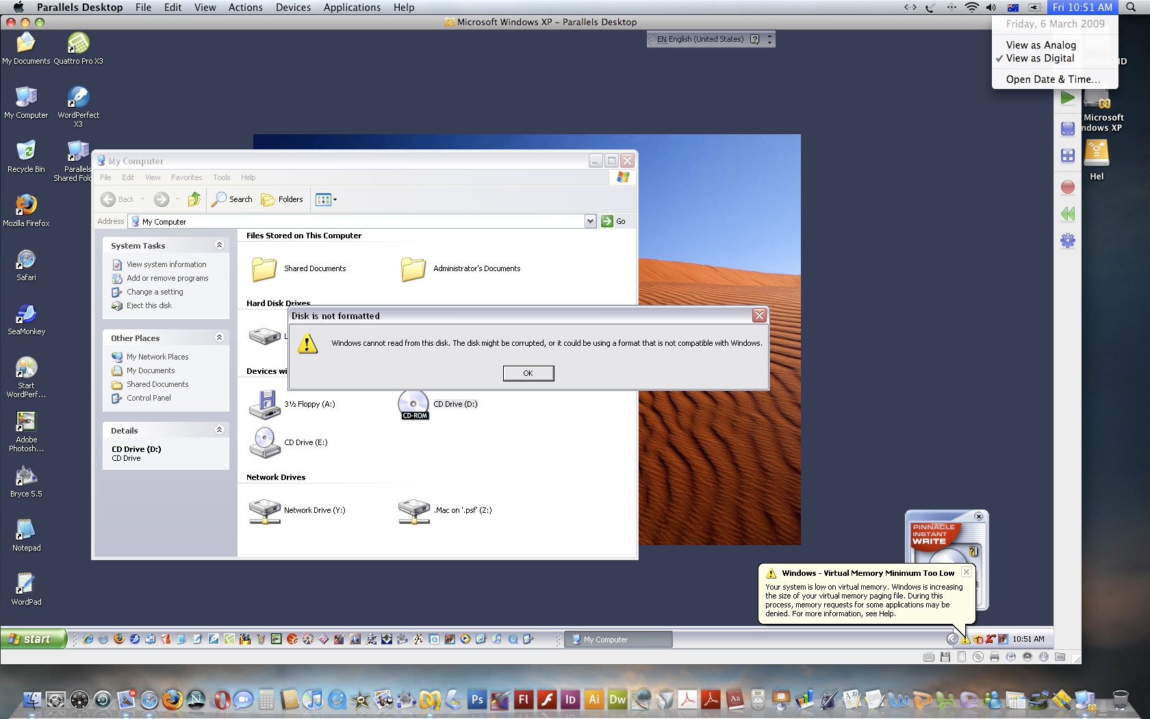 Is this a joke? Windows can't even read its title, "Flash4" CD. The Windows warning actually reads: "Windows cannot read from this disc. The disc may be corrupted…" This screenshot is of Windows being run through my Mac running on OSX Leopard. <>It was never Apple who were the problem with compatibility issues, but Windows.And the reasoning is that Windows don't want compatibility. Below is a screenshot from http://www.theage.com.au/articles/2009/03/03/1235842380586.html :